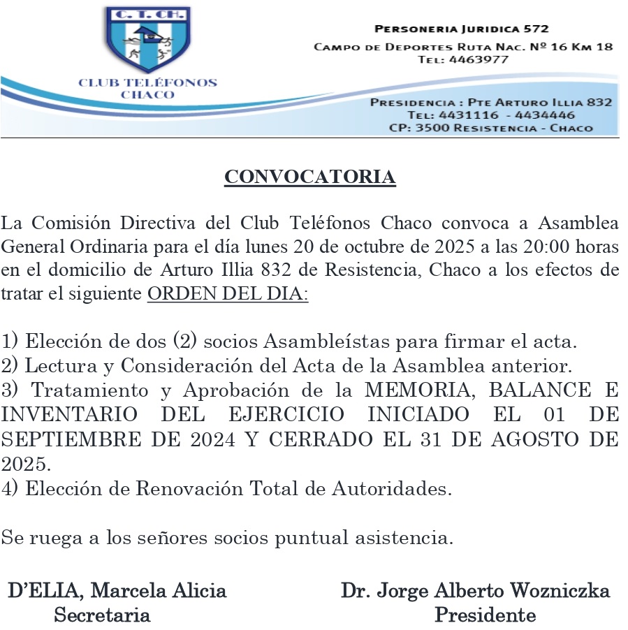 El 25 de Octubre de 2025 se realizará Asamblea y Elecciones en Illia 832.